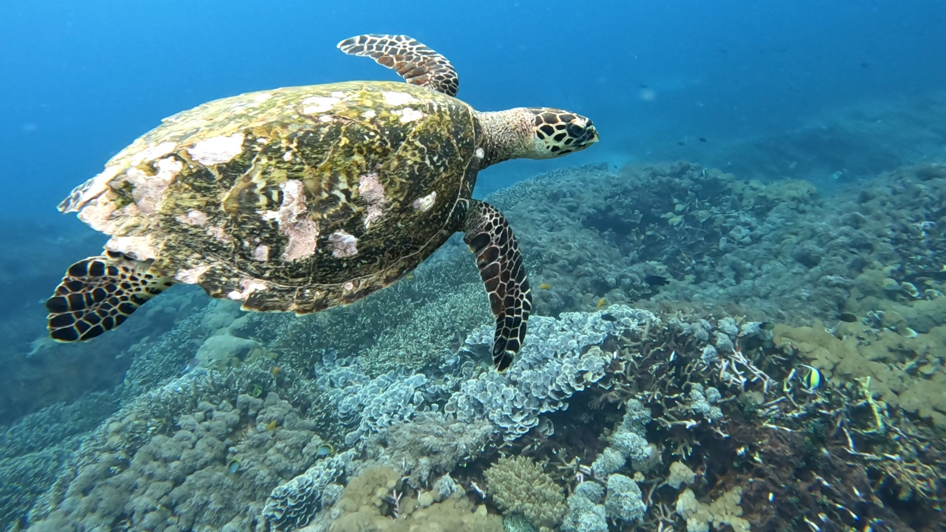 基本的に東から西に向かって流れる事が多く、干潮時に流れが速くなる傾向があります。西に流れていくとタイマイ (ウミガメ) や、アオウミガメを探す事ができますよ。